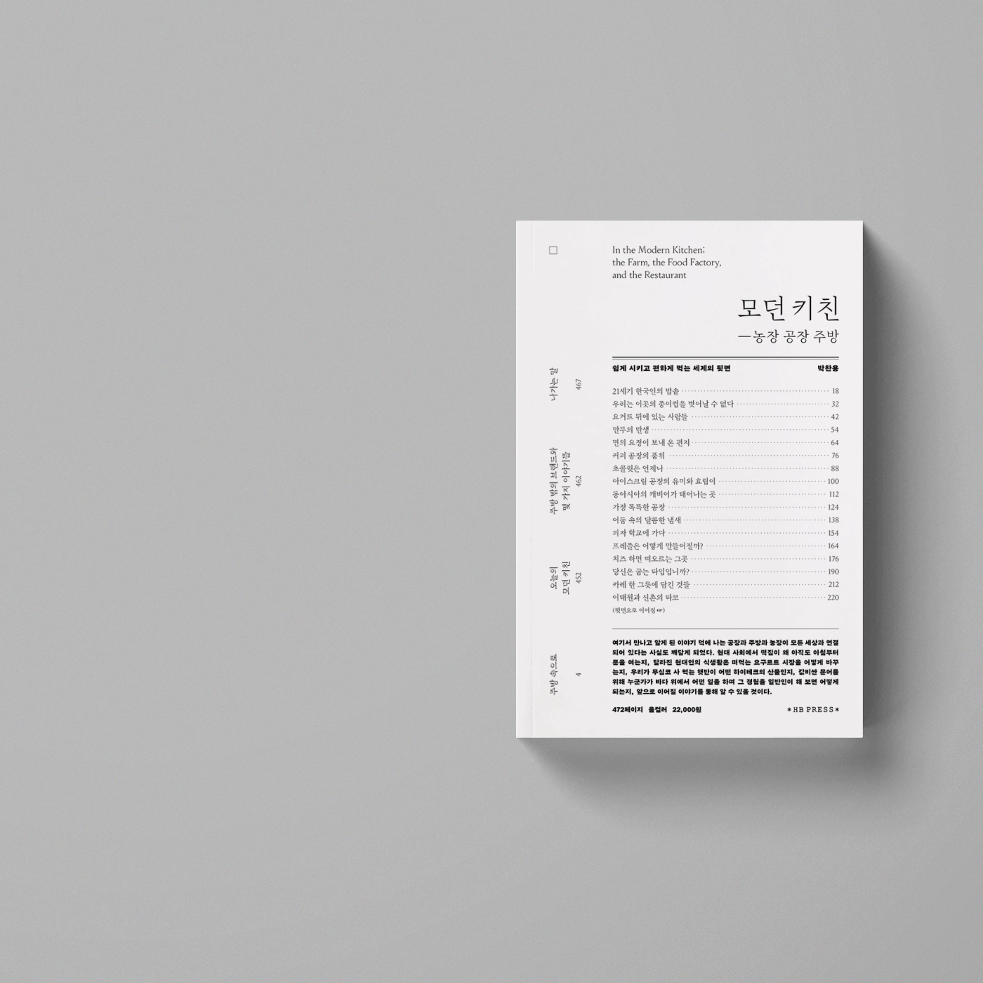 우리가 쉽게 배달시켜 편하게 먹는 데에는 비밀과 이유가 있다. 《모던 키친》은 농장과 공장과 주방에서 음식이 만들어져 모든 세상과 연결되는 모습을 탐구한 책이다. 저자는 《에스콰이어》, 매거진 《B》와 《F》를 거친 15년 경력 라이프스타일 저널리스트 박찬용(현 《아레나》 피처 디렉터)이다. 그가 “이런 걸 만들고 싶어서 에디터 일을 시작했다.”고 밝힐 만큼 애정과 열정을 다해 취재했다. 함께한 사진가들도 주목할 만하다. 뉴진스, BTS 등 K-팝 스타 및 독일 《자이트》 매거진 작업의 송시영을 비롯해 표기식과 신동훈은 프로 사진가이자 작가다. 건축 프로젝트로 유명한 최용준의 식품공장을 비롯해 이 책의 이미지들은 상상 이상이다. (현장에 대한 존중과 배려가 느껴지는 아름다움이다.)